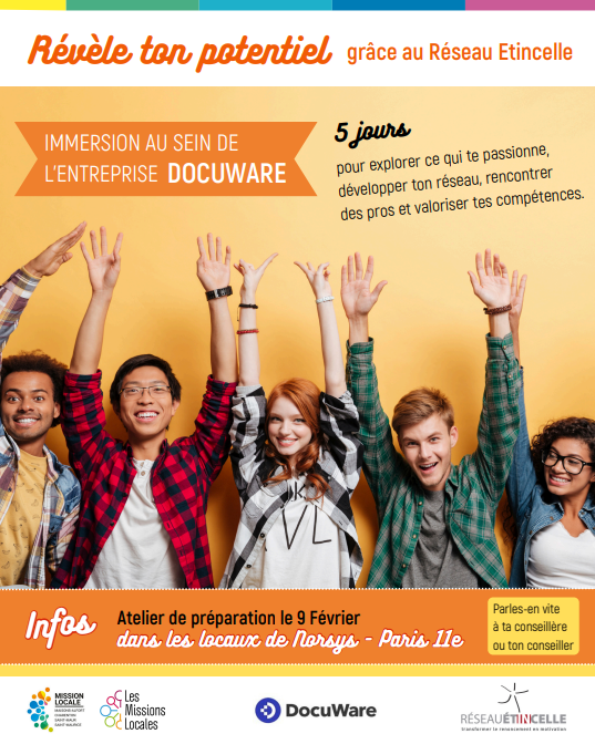 Save the date: RESEAU ETINCELLE. Ateliers d'orientation, de valorisation des compétences et d'une visite d'entreprise du 16 au 20 février/ Inscription obligatoire en info coll le 09 février prochain